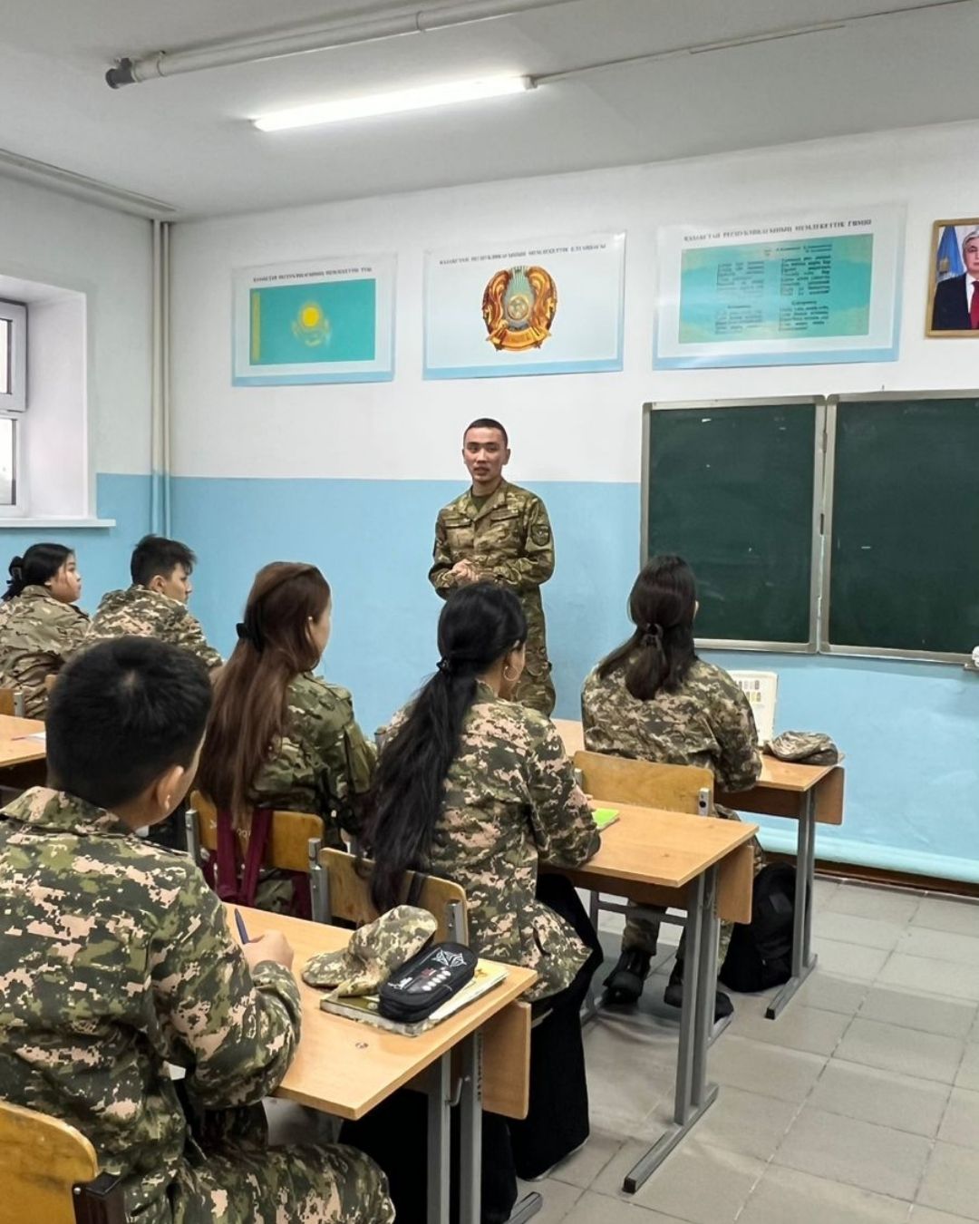 Ол оқушылармен ашық әңгіме жүргізіп, жауынгерлік өмір,