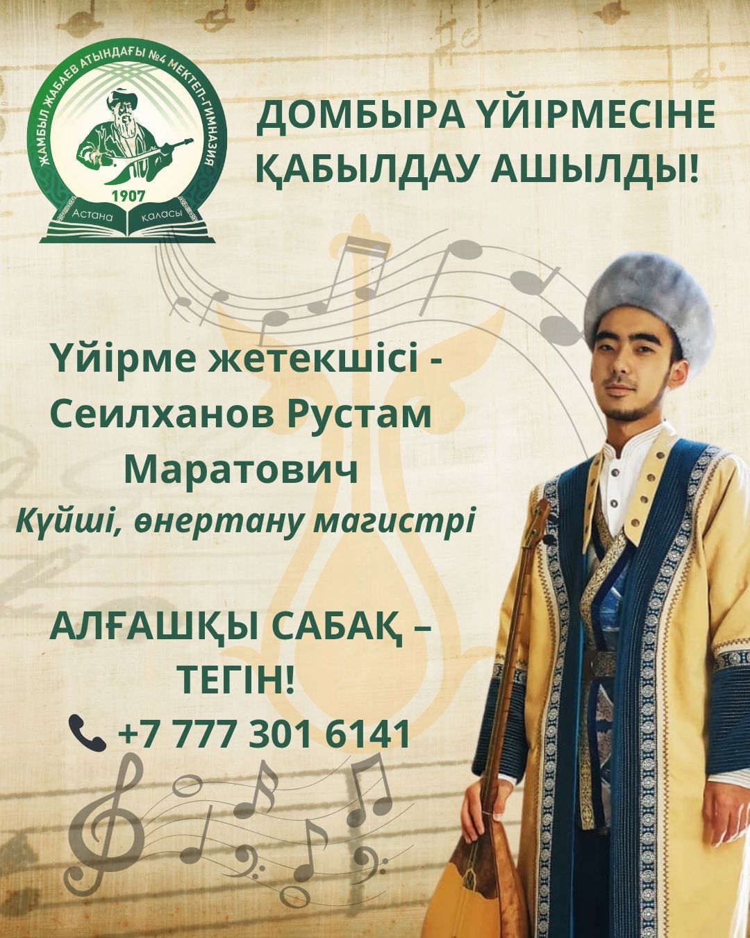 ✨ Домбыра үйірмесіне қабылдау ашылды!